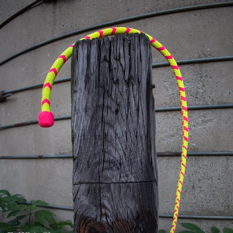 Every EsWhipShop custom snake whip is built by hand, using high-quality materials and meticulous attention to detail. Built for precise targeting and responsive handling, the 3′ custom snake whip is hand-plaited to order with a weighted core and two plaited bellies for added structure and flow. The 16-plait overlay offers a premium finish. Every whip is thoroughly dipped and treated in wax to improve weight, control, and smoothness.
